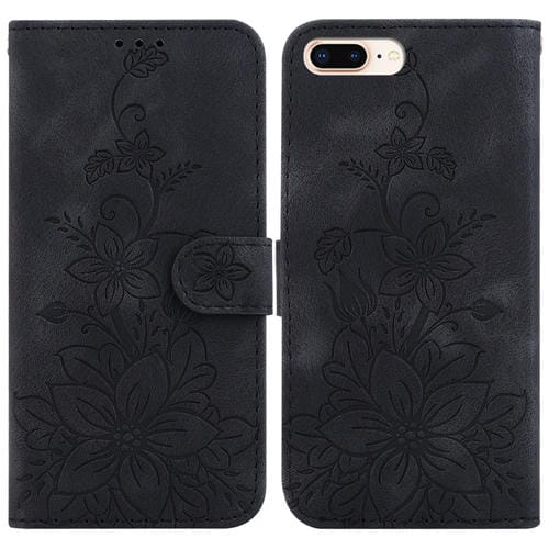 Funda para teléfono iPhone 8 Plus/7 Plus Cuero con Relieve Lily (Negro)