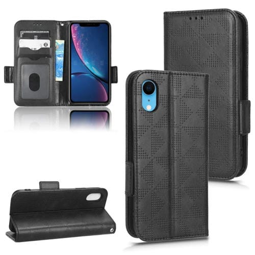 Funda de Teléfono para iPhone Xr Cuero con Triángulo Simétrico (Negro)