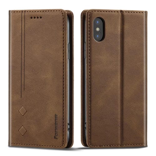 Estuche de Cuero FoRWenw F2 Series para iPhone Xs Max con Tapa Horizontal Magnética, Soporte y Ranuras para Tarjetas y Billetera (Marrón)