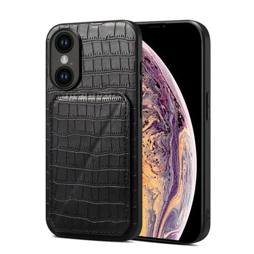 Funda Trasera iPhone Xs Max Piel Cocodrilo Imitación con Soporte (Negro)