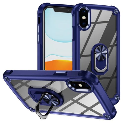 Estuche para Teléfono iPhone Xs / X TPU + PC con Protección de Lente y Soporte para Anillo (Azul)