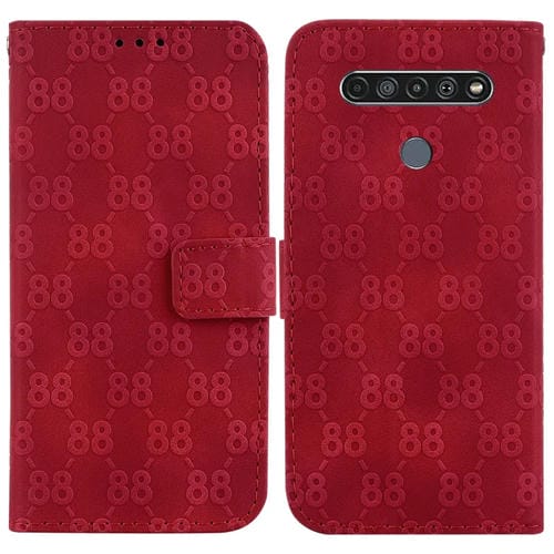 Estuche para Teléfono LG K61 Cuero En Relieve Doble En Forma de 8 (Rojo)