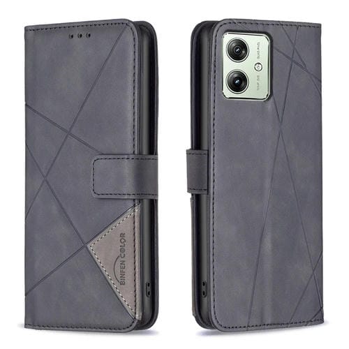Funda para Motorola Moto G54 5G Eu Edition de Cuero con Textura de Rombo y Hebilla Magnética (Negro)