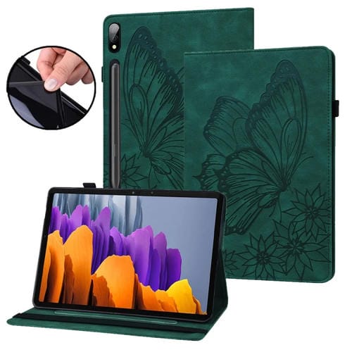 Funda para Tablet Samsung Galaxy Tab S9 Ultra / S8 Ultra Cuero Relieve Mariposa Grande (Verde)