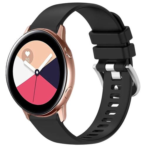 Correa de Silicona para Samsung Galaxy Watch Active y Active 2 con Hebilla Plateada (Negro)