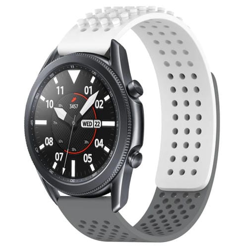 Correa de Silicona para Samsung Galaxy Watch3 45mm 22mm con Orificios y Puntos 3D Transpirables (Blanco + Gris)