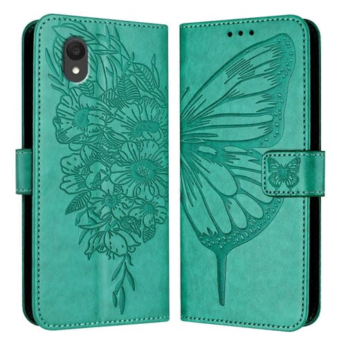 Funda de Cuero para TCL 201 con Mariposa en Relieve (Verde)