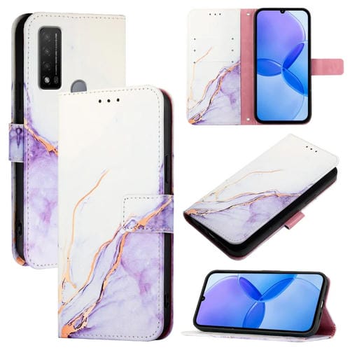 Funda de Cuero con Tapa para TCL 20R 5G Pt003 con Patrón de Mármol (Blanco y Morado)