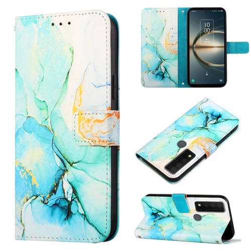 Funda de Teléfono TCL 30 V 5G T781S/30 Xe 5G Pt003 con Tapa de Cuero y Patrón de Mármol (Verde)