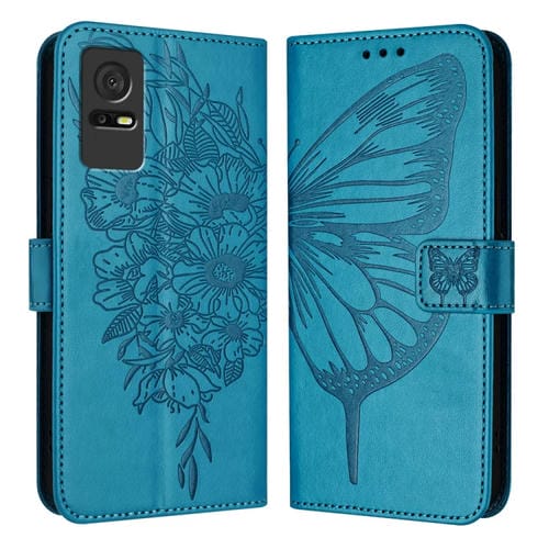 Funda para Teléfono TCL 405/406/408 Cuero con Mariposa en Relieve (Azul)