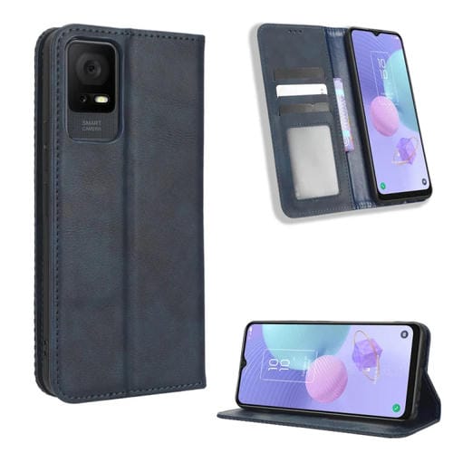 Funda de Cuero para TCL 405 / 406 T506D con Hebilla Magnética y Textura Retro (Azul)