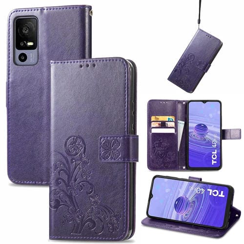 Estuche para TCL 40R de Cuero con Hebilla en Relieve y Cierre de Cuatro Hojas (Púrpura)