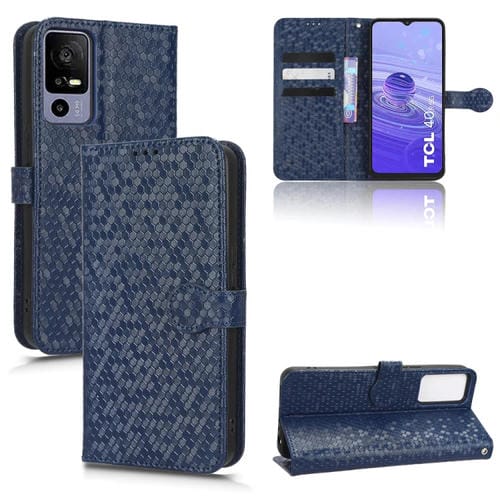 Funda de Cuero para TCL 40R Honeycomb Dot Texture (Azul)