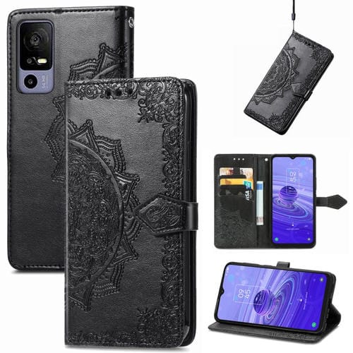 Funda para TCL 40R Mandala Flower de Cuero En Relieve (Negro)