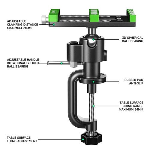 • Distancia máxima de sujeción: aprox. 94 mm; distancia máxima de fijación: aprox. 54 mm; tamaño aproximado: 21,5 x 15,6 cm; peso: aprox. 635 g; banco de trabajo giratorio 3D con ajuste multiángulo