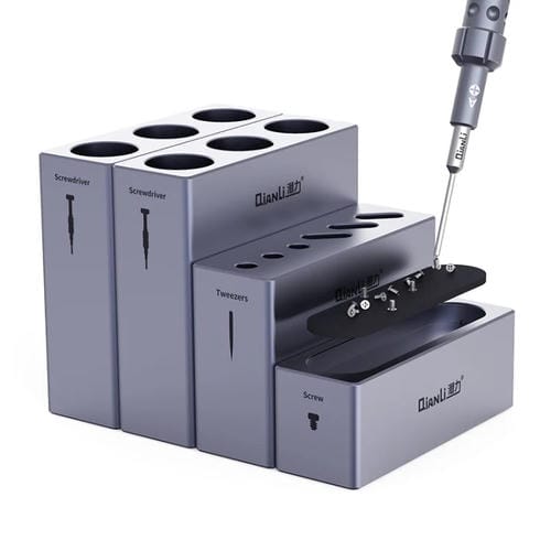 - 1x Caja de Almacenamiento modular multifuncional de aleación de aluminio Qianli iCube con 2 módulos para destornilladores, 1 módulo para pinzas y 1 módulo para tornillos