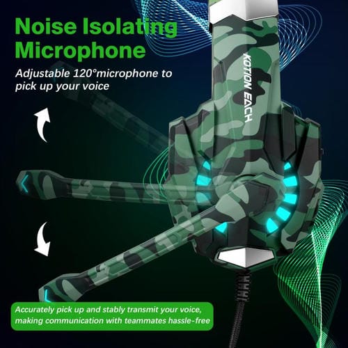 Auriculares supraaurales para juegos KOTION EACH G9000 Pro con micrófono, longitud del cable: aprox. 2,1 m (verde camuflaje)