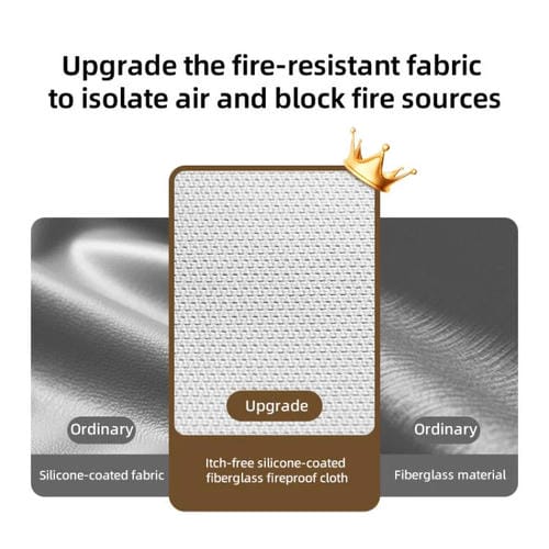 3. Tejido ignífugo mejorado, totalmente ignífugo: el material está completamente mejorado desde el interior hasta el exterior, con sustrato de fibra de vidrio fina + revestimiento de silicona antipicazón, que aísla el aire, bloquea el foco de fuego y almacena los artículos de forma más segura.