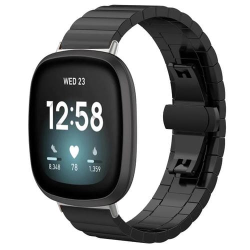 Correa de acero inoxidable macizo de bambú de una sola cuenta de 20 mm xDfind para Fitbit Versa 4/3/Sense2/1 (negra)
