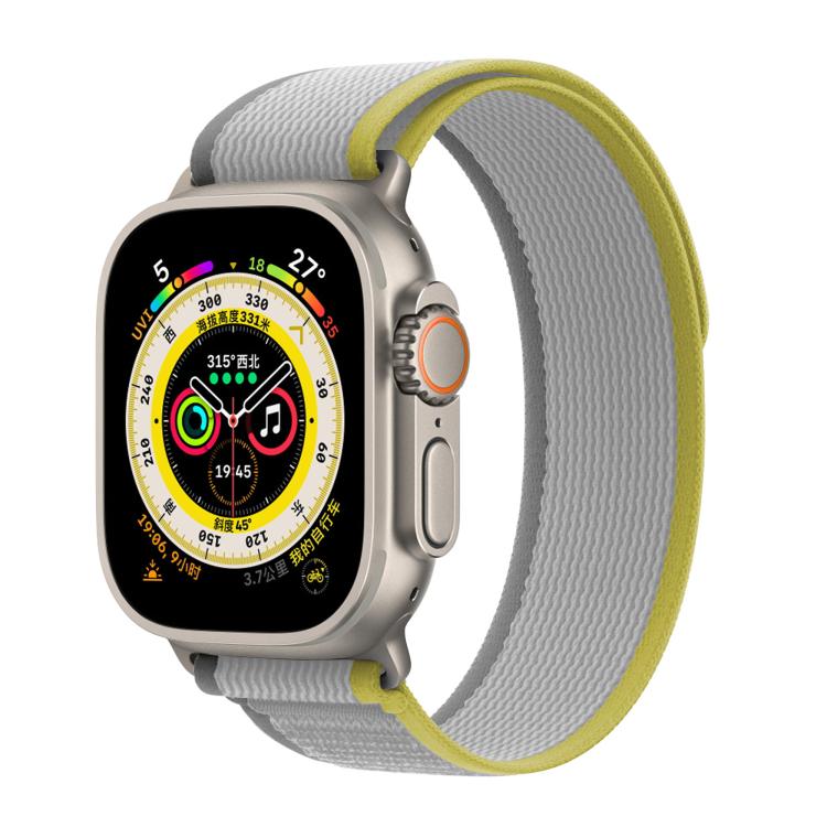 Correa de nailon Wild Path Loop de 45 mm para Apple Watch Series 9/8/7 con película curva 3D (amarillo y beige)