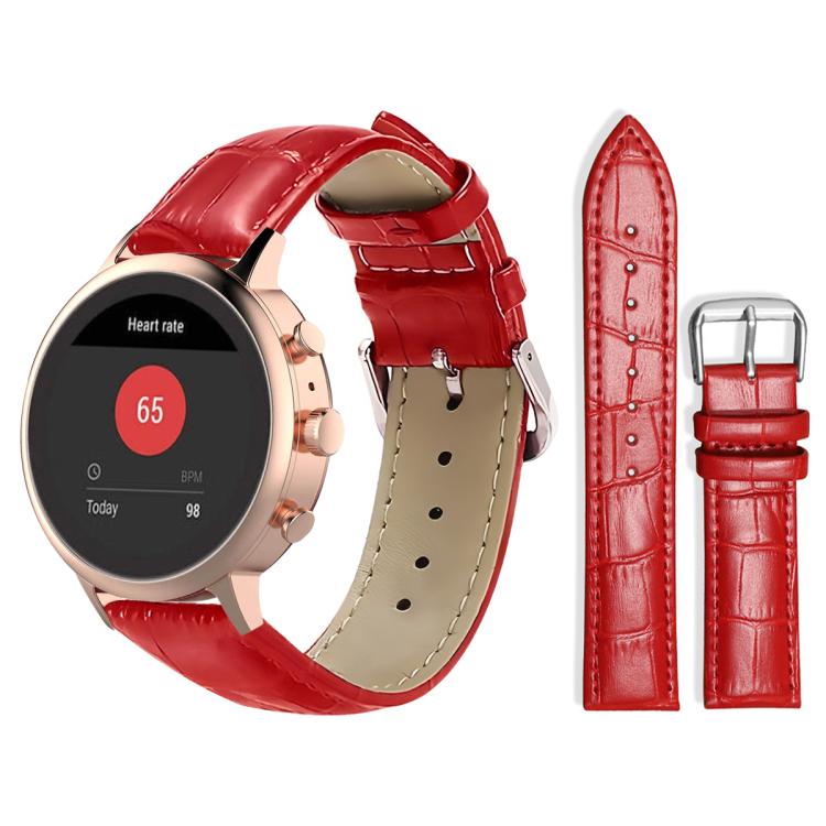 Correa de reloj de cuero con hebilla de pasador y textura de bambú de 18 mm para Fossil Sport/Charter HR (mujer) xDfind (rojo)