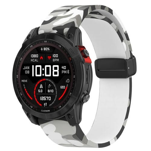 Correa de Reloj Silicona Garmin Fenix 7S Estampado Color Hebilla Negra Plegable Magnética (Blanco Camuflaje)