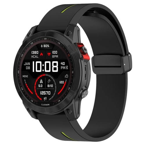 Correa de Reloj Silicona Garmin Fenix 7S Hebilla Plegable Magnética (Negro Lima)