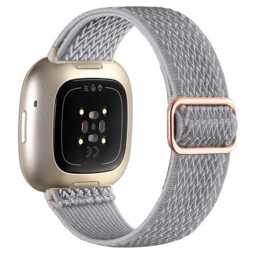 Correa de reloj elástica trenzada de nailon ondulado con hebilla de ajuste para Fitbit Versa 4/3/Sense2/1 xDfind (gris claro)
