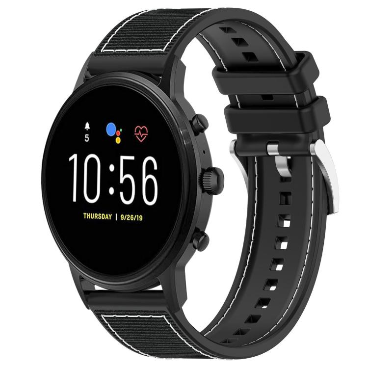 Correa de reloj híbrida de silicona y nailon trenzado de 22 mm para Fossil Gen 5 Carlyle/Julianna xDfind (negra)