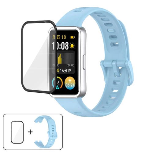 Correa de silicona con hebilla colorida y película curva 3D para Huawei Band 10/10 NFC (azul claro)