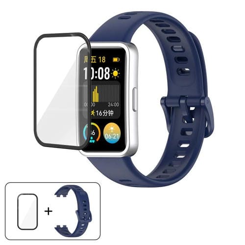 Correa de silicona con hebilla colorida y película curva 3D para Huawei Band 9/9 NFC (azul oscuro)