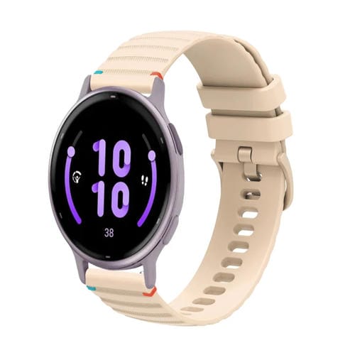 Correa de Silicona 20mm para Reloj Garmin Active 5 con Puntadas Onduladas y Puntos (Crema)