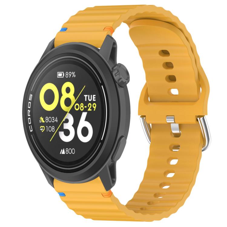 Correa de silicona de 22 mm con costuras de grano ondulado para reloj COROS Pace 3 (amarillo)