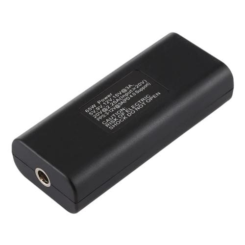 - Potencia máxima soportada: 65 W; dimensiones: 70x30x17 mm; longitud del Cable USB-C: 15 cm