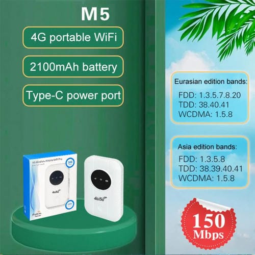 - 1x Enrutador Portátil para autoMóvil M5 4G/5G con Tarjeta SIM y WiFi de bolsillo (Edición Asiática)