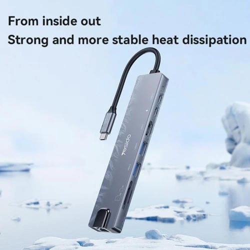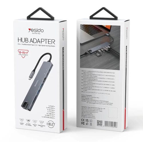 Estación de Acoplamiento Adaptador Hub Multifuncional Tipo C 3.1 8 en 1 Yesido HB27 (Gris Oscuro)