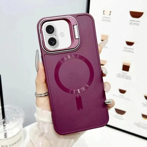 Estuche para Teléfono con Soporte para Lente Magsafe Esmerilado con Textura de Cd para iPhone 16 Plus (Rojo)