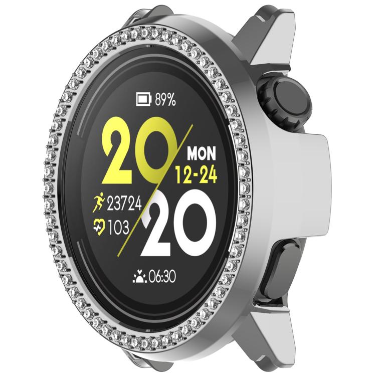 Estuche protector para reloj COROS Pace Pro de PC con una sola fila de diamantes y media cobertura (plateado)