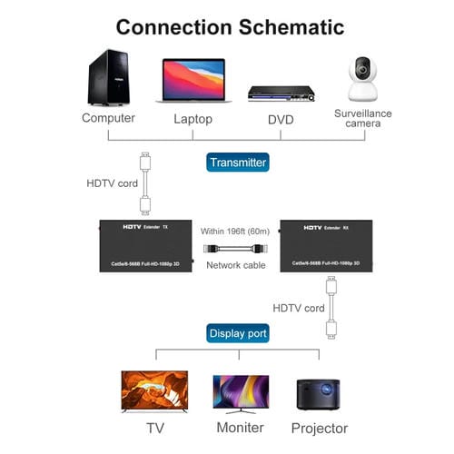 El extensor de Cable de red RJ45 HDTV de 60 metros con enchufe de EE. UU. es un dispositivo diseñado para ampliar la Conexión de red en instalaciones que requieren transmisión de Señal a larga distancia. Compatible con resoluciones HD, este extensor permite una experiencia visual clara y fluida, ideal para entornos que demandan alta calidad de imagen. Su función principal es transmitir Señales de red sin pérdidas hasta 60 metros (196 pies), facilitando la Conexión entre dispositivos en espacios amplios. Además, incorpora la función de ajuste EDID, que detecta automáticamente la resolución óptima del dispositivo de visualización conectado, simplificando la configuración. Fabricado con un cuerpo de aleación metálica, mejora la protección de la Señal y la disipación térmica, asegurando un funcionamiento estable y duradero. Su compatibilidad amplia con diversos dispositivos y la tecnología plug-and-play permiten una instalación rápida y sin complicaciones, con baja latencia para mantener una transmisión fluida.