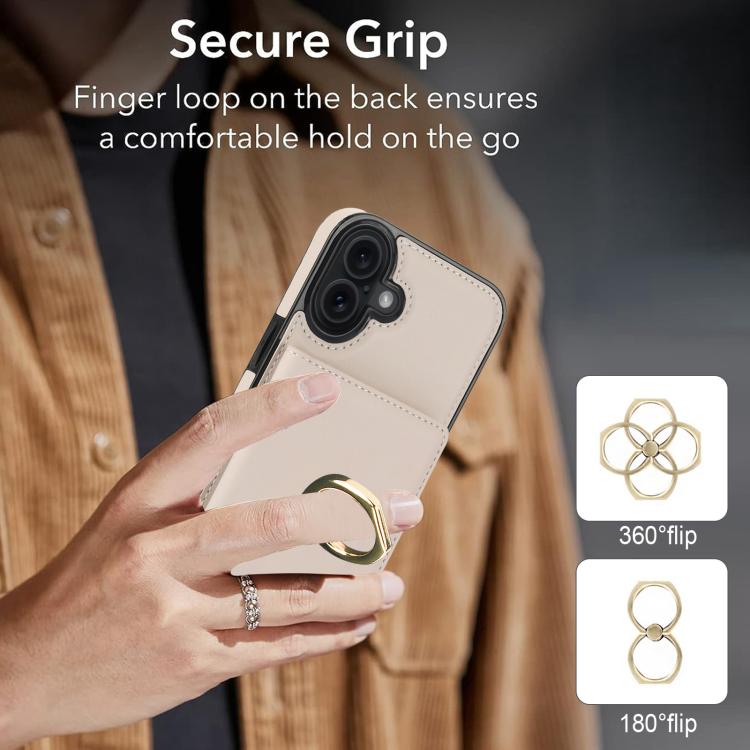 Funda antirrobo RFID para iPhone 17 con anillo para tarjetas (blanca)