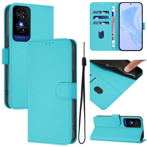 Funda de Cuero con Cordón para TCL 50 5G y 50 Xe Nxtpaper 5G (Azul Lago)