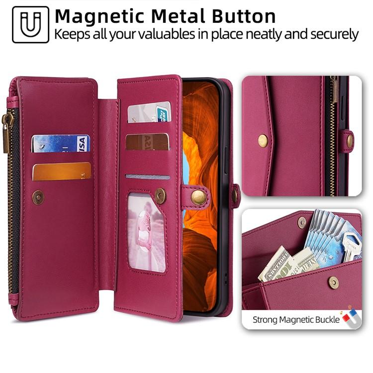 2. Función de billetera multitarjeta: 5 ranuras para tarjetas, 1 portarretratos, 1 ranura para efectivo, 1 bolsillo con cremallera y 1 billetera magnética para guardar tarjetas de crédito, efectivo o billetes pequeños para uso diario.