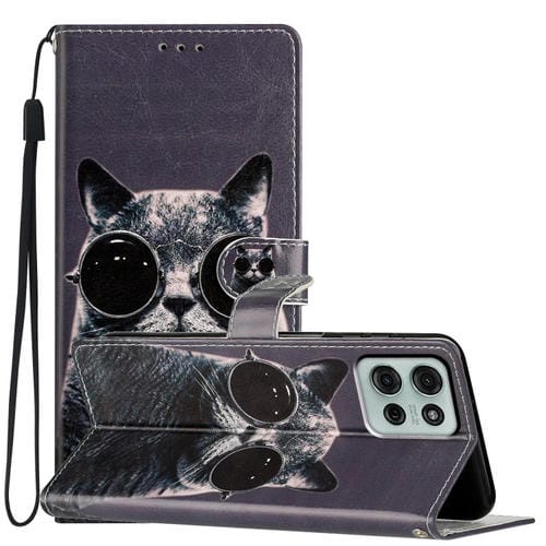 Funda de Cuero para Motorola Moto G75 5G con Dibujo de Colores (Gafas de Sol con Gato)