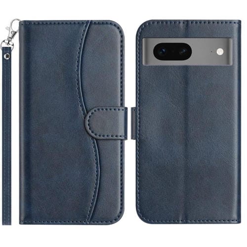 Funda de Cuero con Doble Pliegue en Forma de S para Google Pixel 7 (Azul Marino)