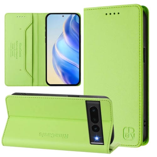 Funda de Cuero con Doble Pliegue y Succión Magnética RFID para Google Pixel 7 Pro Rc01 (Verde Hierba)