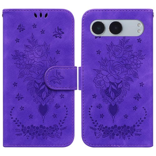 Funda de Cuero con Relieve Mariposa y Rosa para OnePlus Nord 4 (Morado)