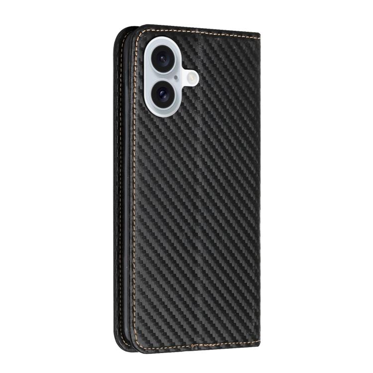 Funda de cuero con tapa magnética y textura de fibra de carbono para iPhone 17 (negra)