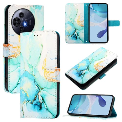 Funda de Cuero con Tapa para Teléfono TCL 50 Pro Nxtpaper Pt003 Diseño Mármol (Verde)