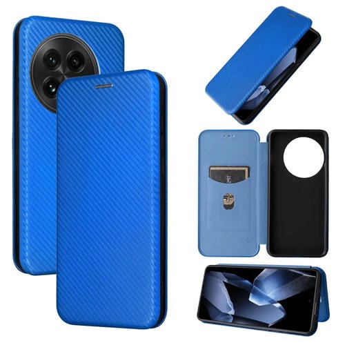 Funda de Cuero con Tapa y Textura de Fibra de Carbono para OnePlus 13 (Azul)