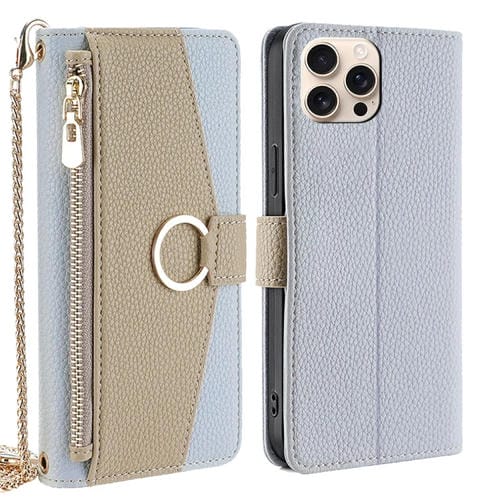 Funda de Cuero con Textura de Lichi Cruzada para iPhone 16 Pro (Azul)